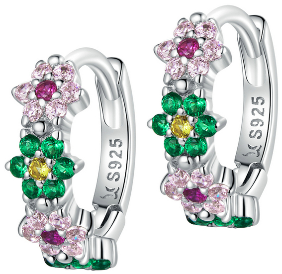 Srebrni cvetlični obročki s cirkoni S925 Celoten opis