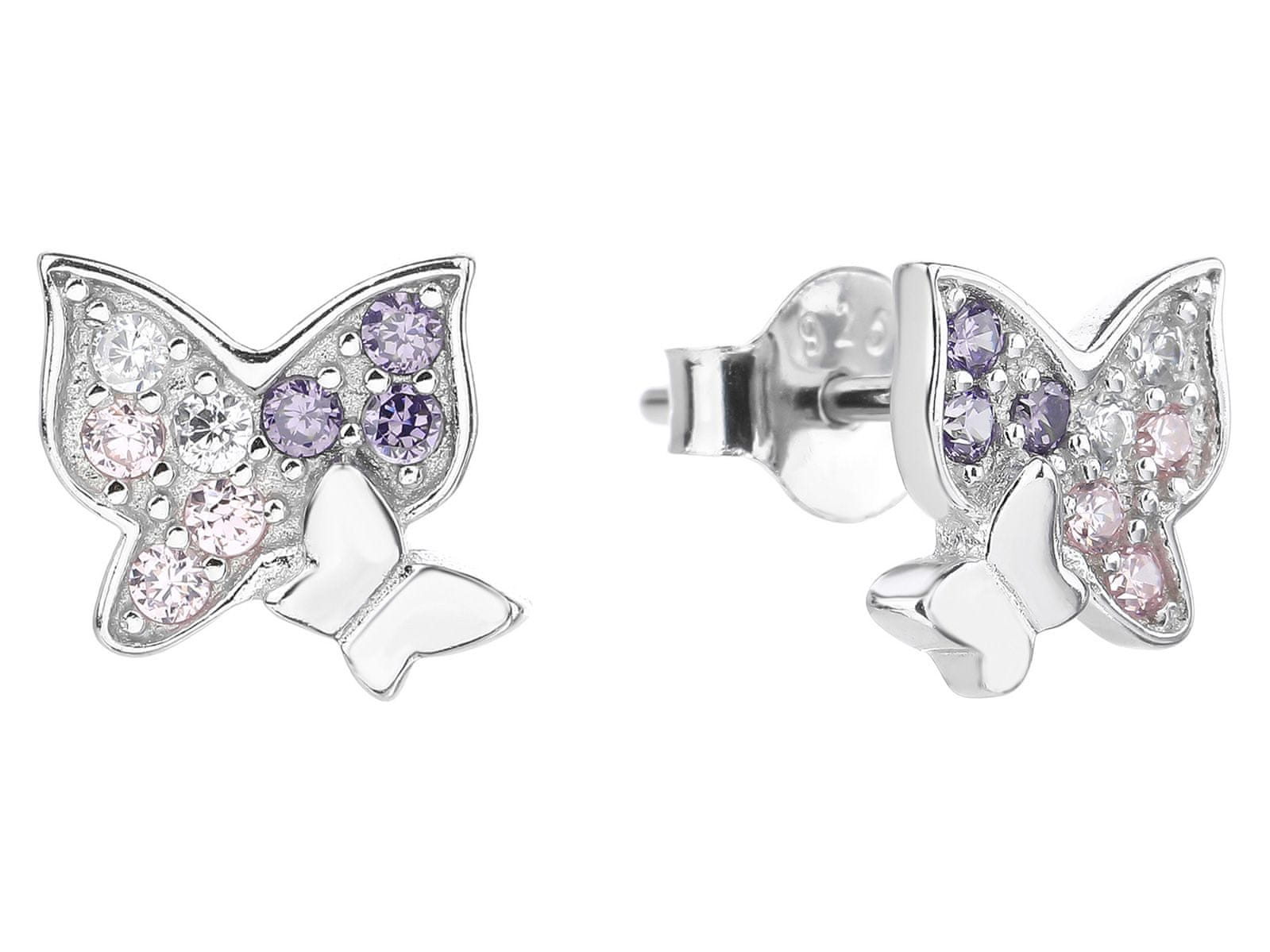 shumee Srebrni uhani z metuljčki in kubičnim cirkonijem, prevlečenimi z rodijem, za dekleta