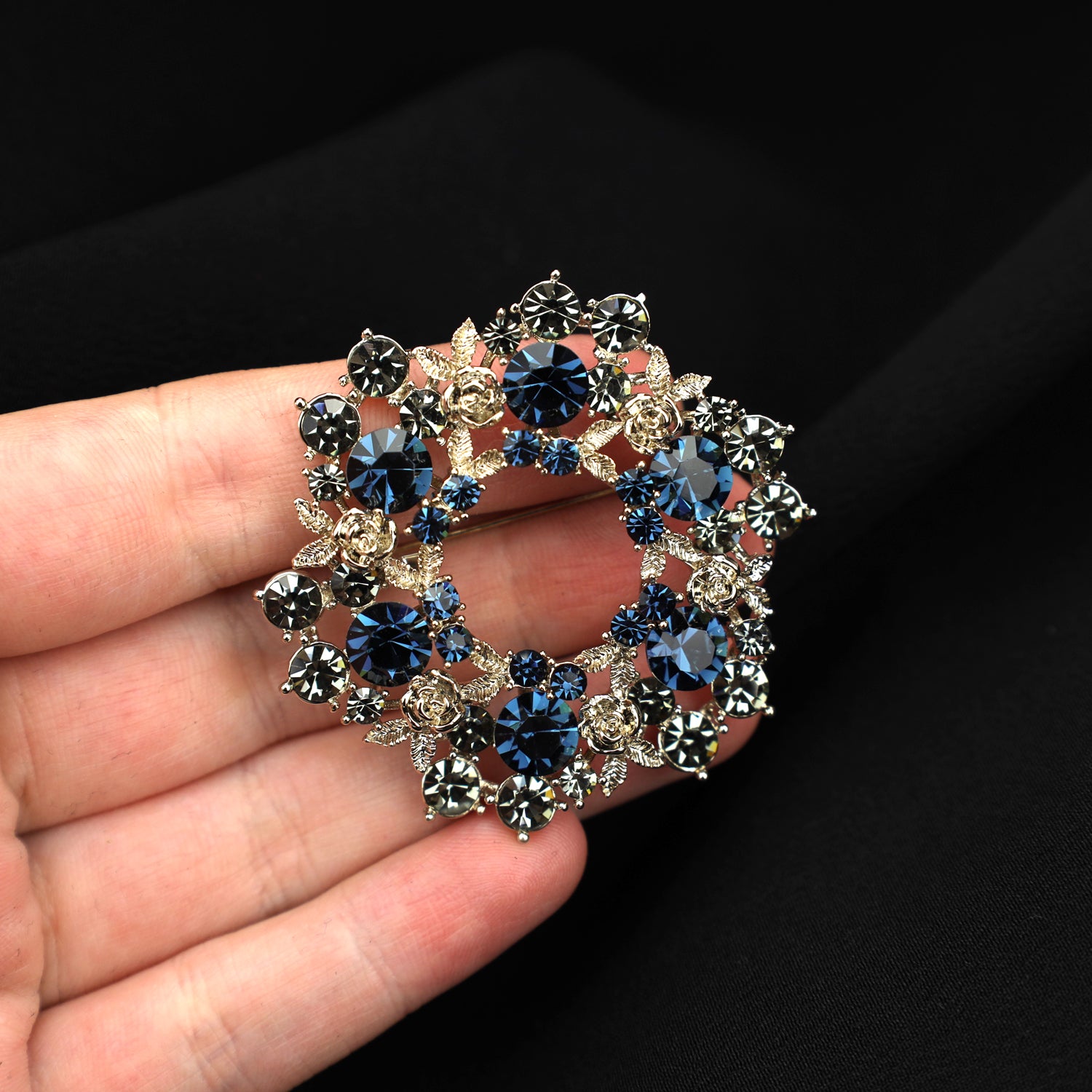 Čudovita broška v obliki venca z vrtnicami, pozlačena s 14-karatnim zlatom