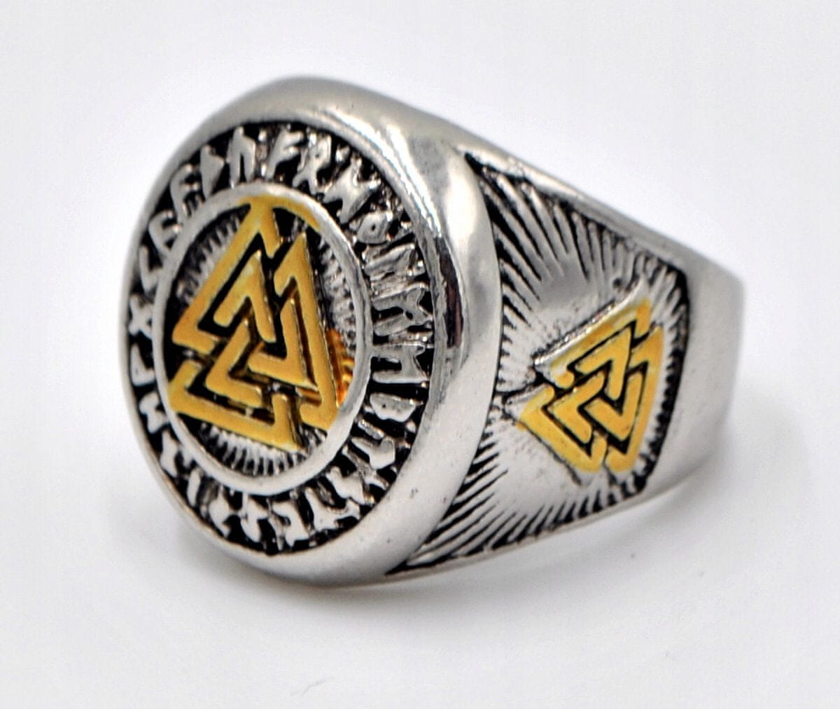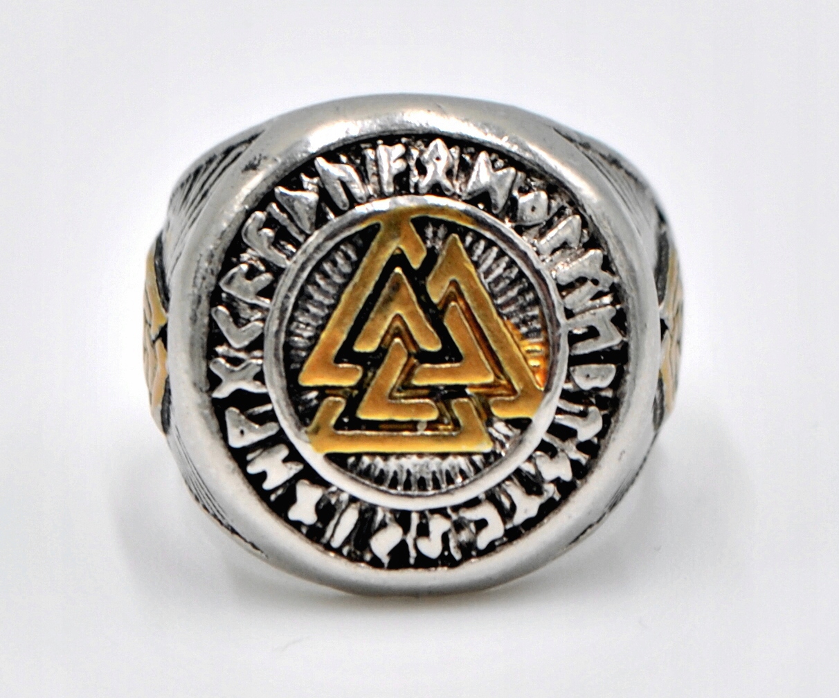 VIKINGSKI PEČATNI PRSTAN VALKNUT Nordijske rune 502 Celoten opis