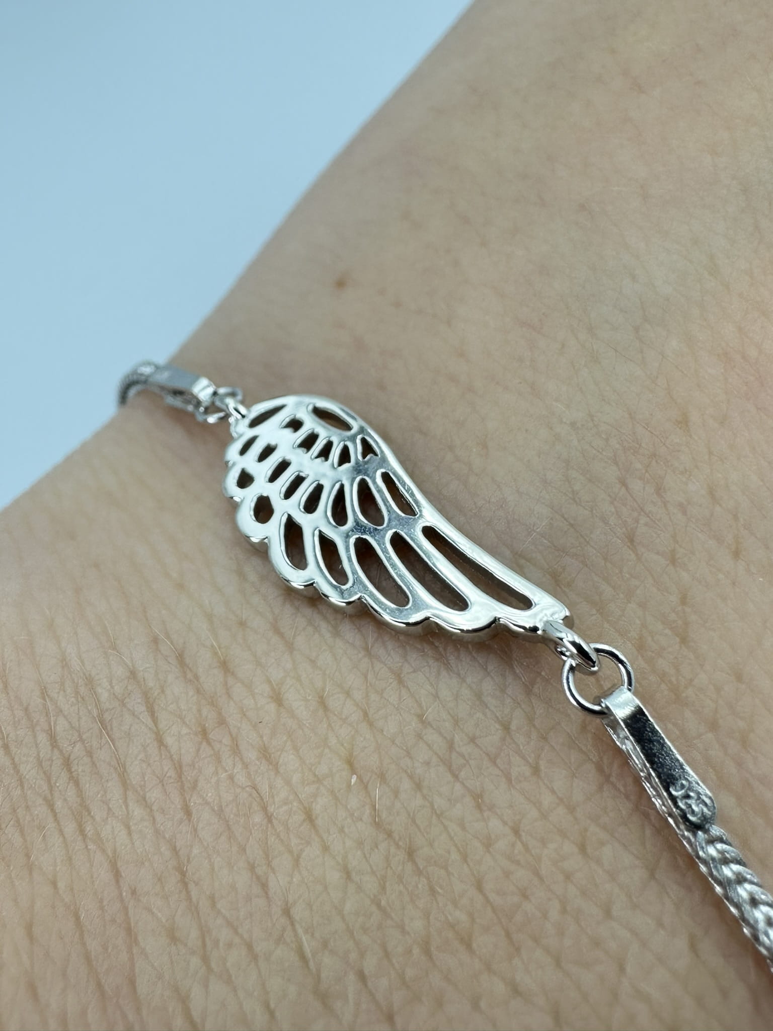 Čudovita zapestnica iz srebra 925, z nežnim motivom krila.