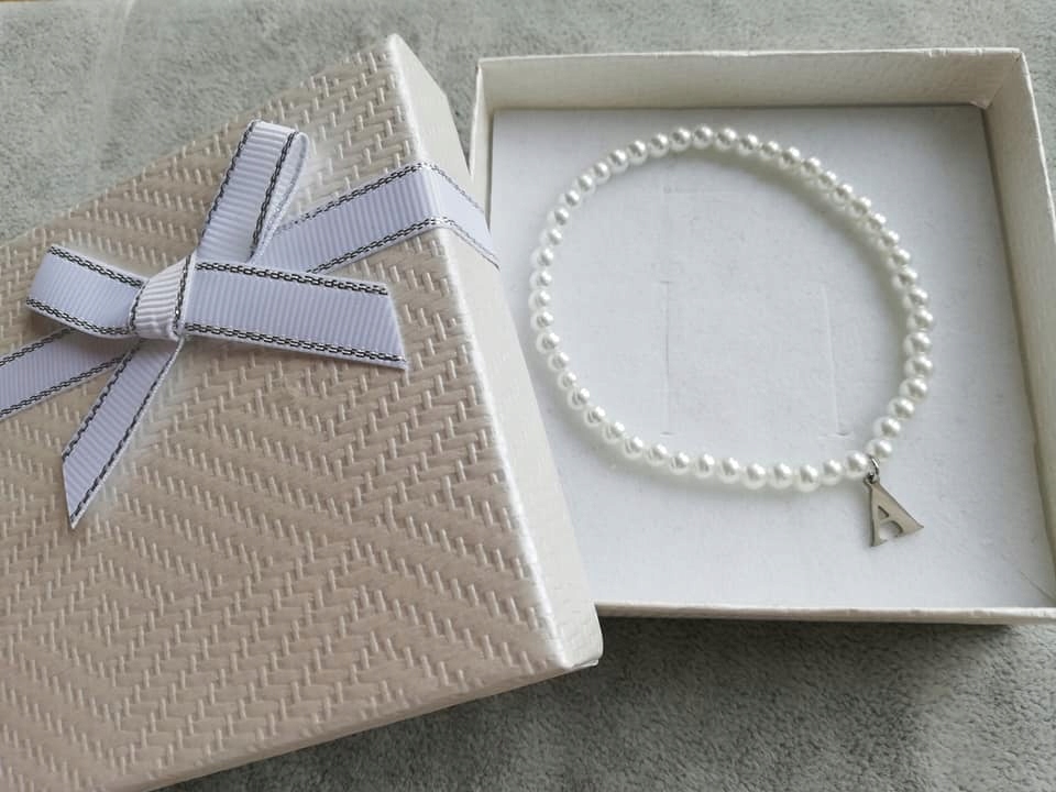 shumee ZAPESTNICA NA ELASTIČNEM TRAKU Z MAJHNIMI BISERI Z JEKLENIMI ČRKAMI VSE ČRKE OBHRANA