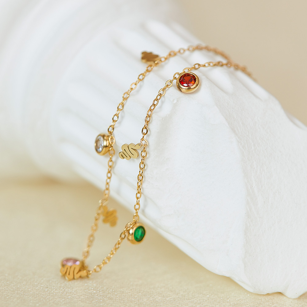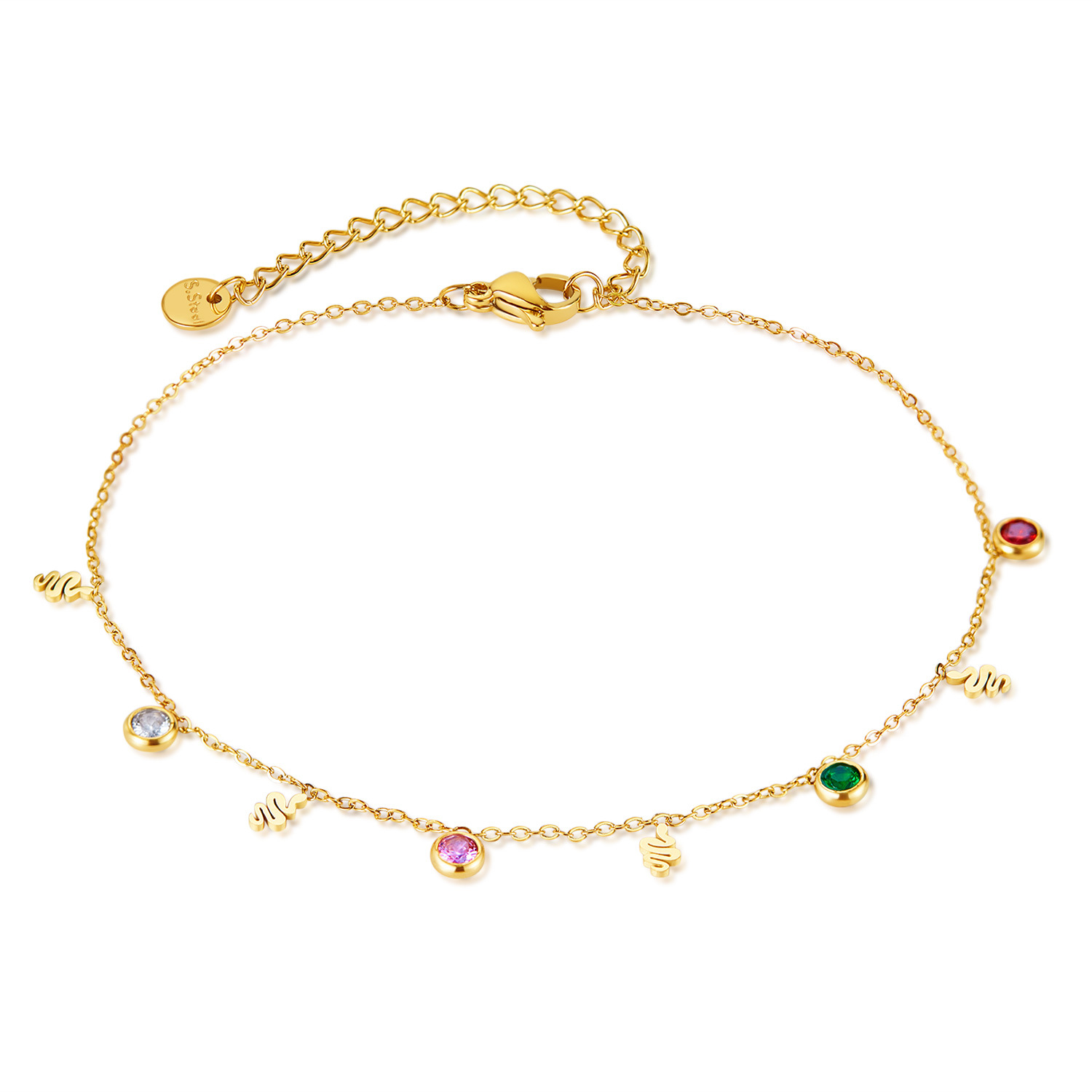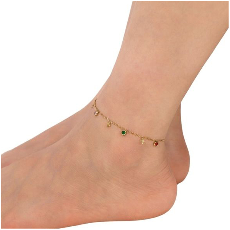 shumee Zapestnica za gleženj iz kačjega jekla z zlatimi cirkoni