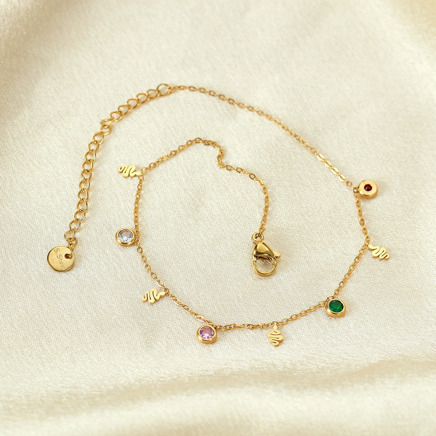 Zapestnica za gleženj z barvitimi cirkoni in kačami