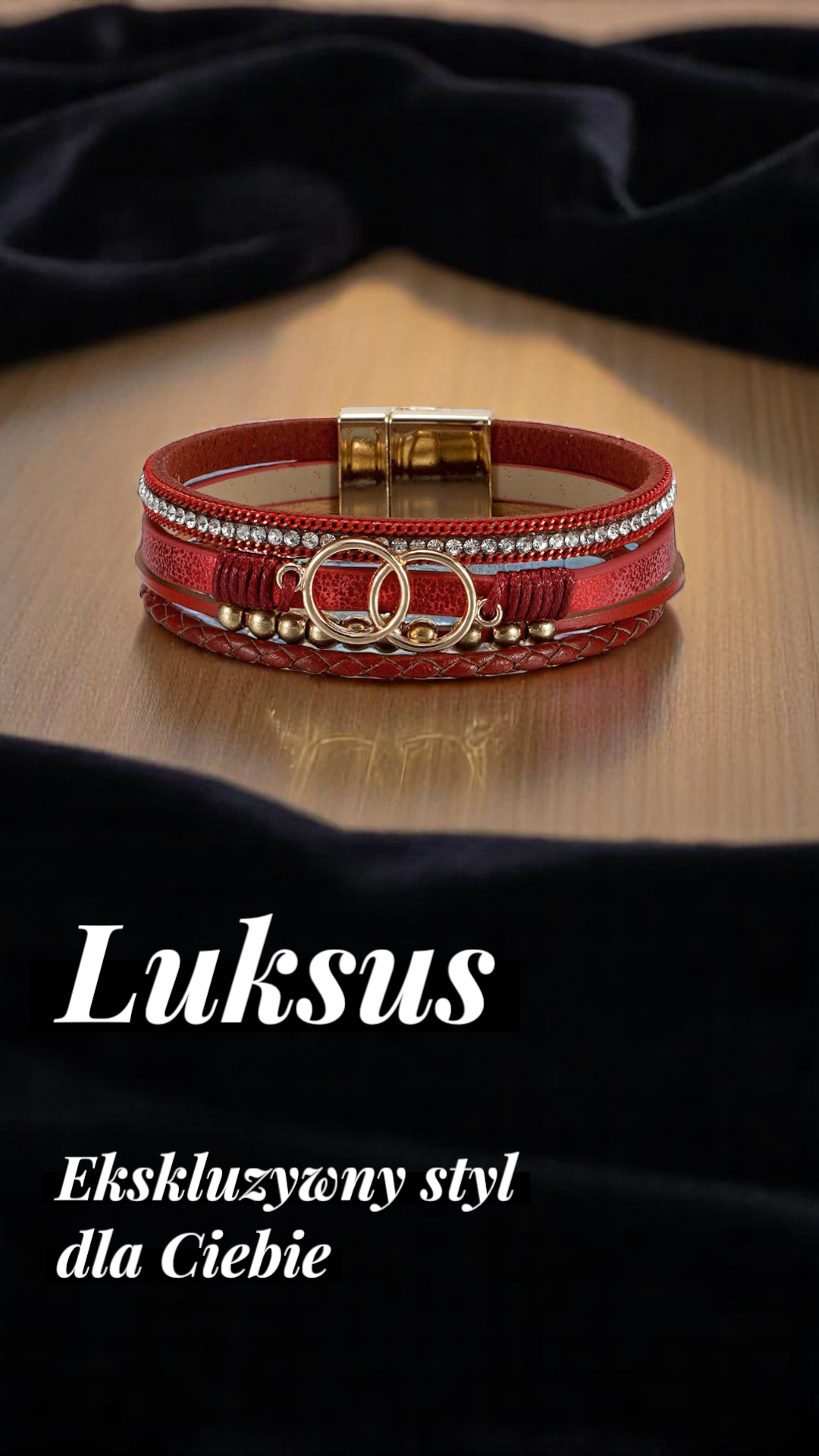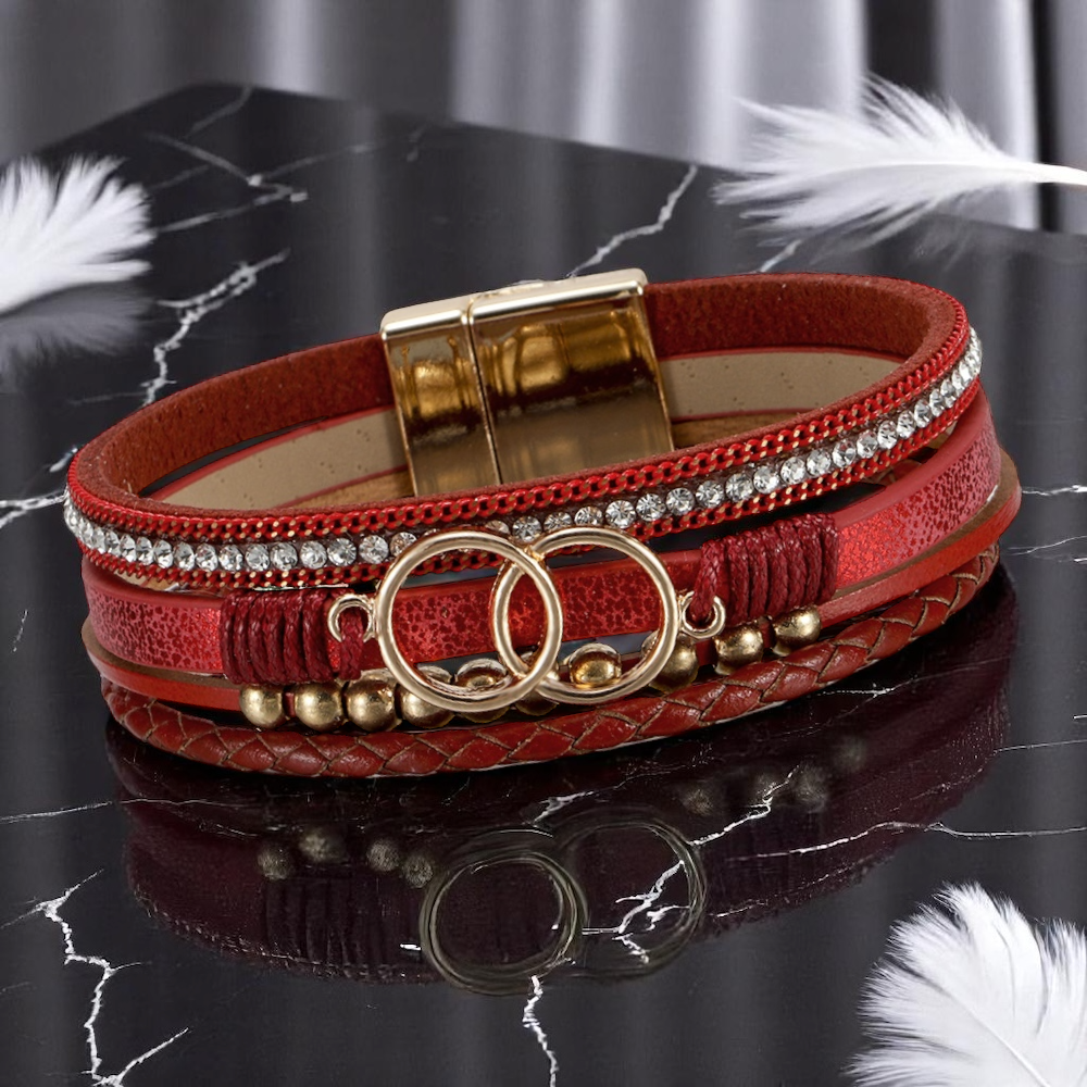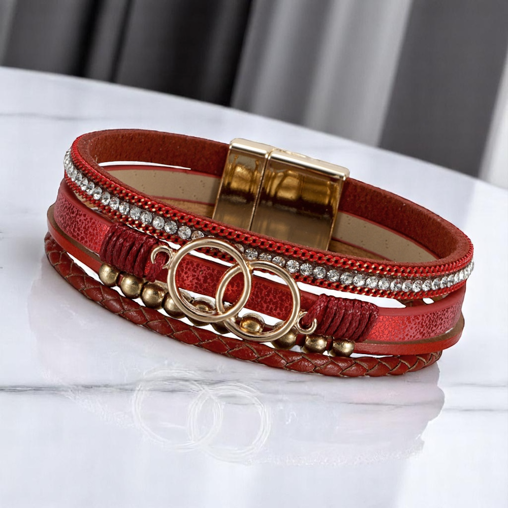 shumee Ženska boho zapestnica rdeče zlato magnet 19,5 cm usnje
