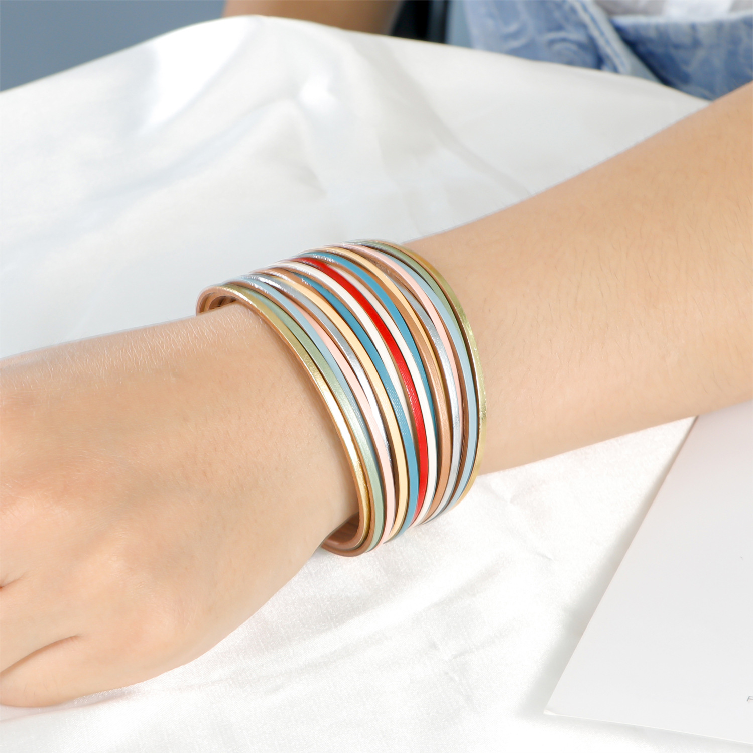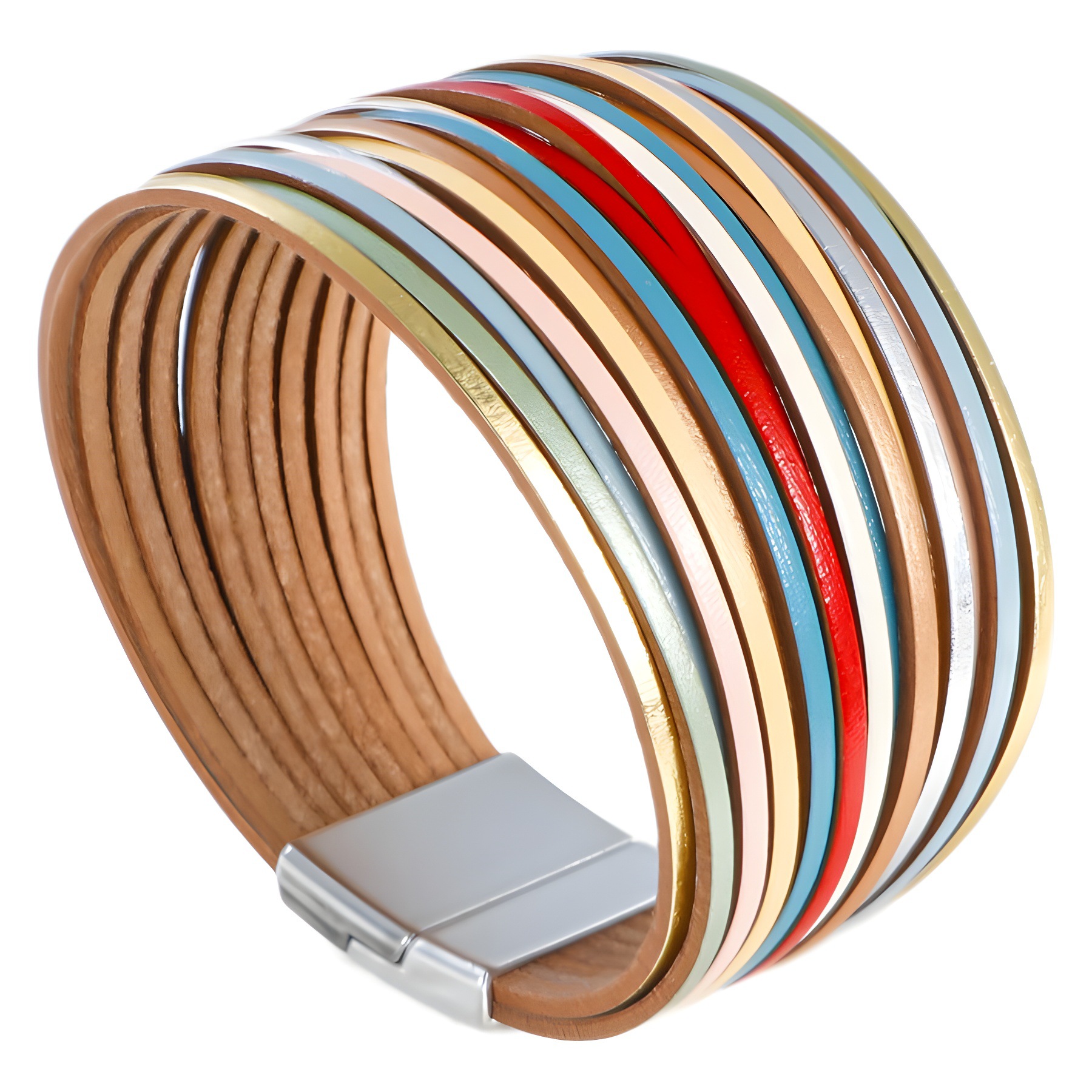 Večbarvna ženska zapestnica iz eko usnja – 25 mm, magnetna zaponka