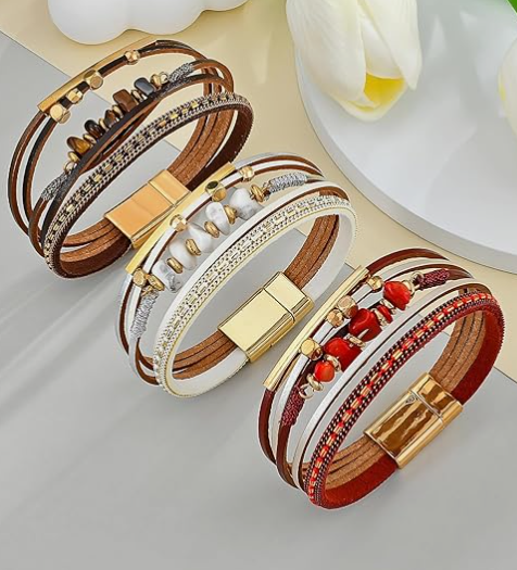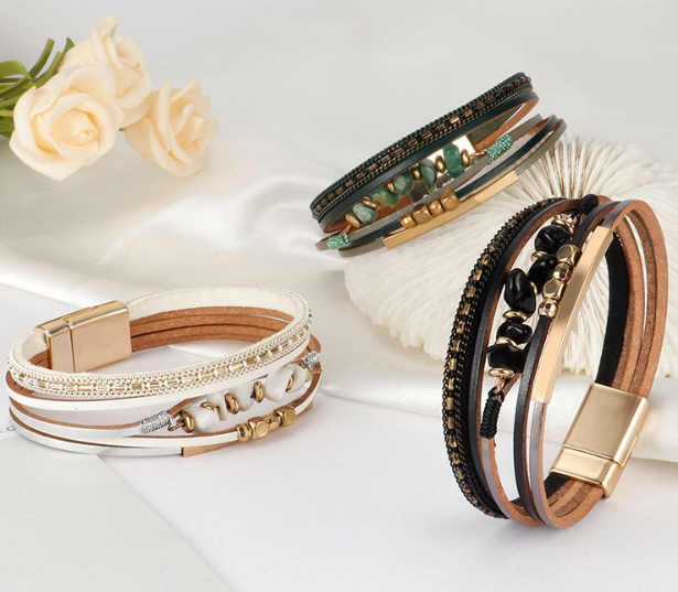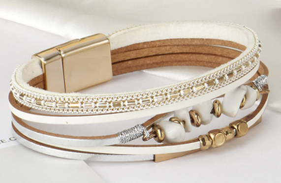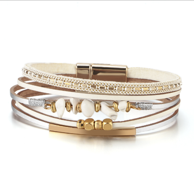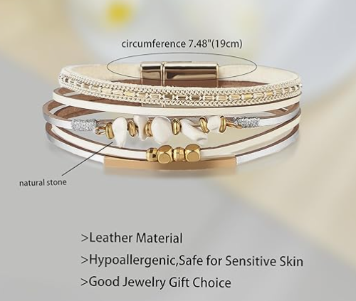 Ženska usnjena zapestnica z belim kamnom Celoten opis