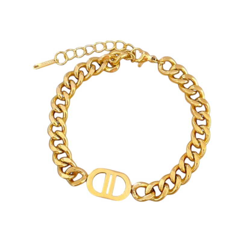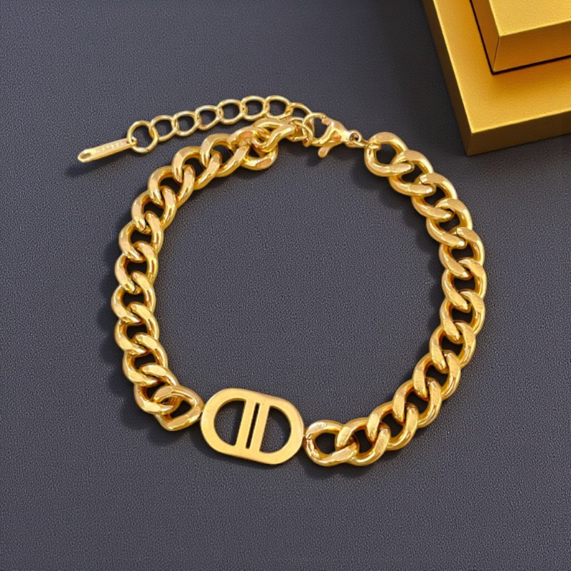 Moderna in elegantna ženska zapestnica iz visokokakovostnega nerjavečega jekla, odpornega proti rjavenju, potemnitvi in izgubi sijaja. Klasično verižico iz členov dopolnjuje eleganten dekorativni element v osrednjem delu, ki zapestnici daje moden, razkošen značaj.