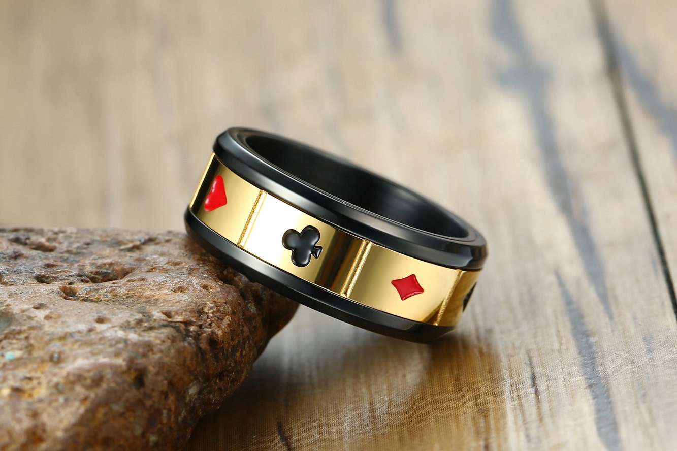shumee ZLATI PEČATNI PRSTAN Poker karte POROČNI PRSTAN 213
