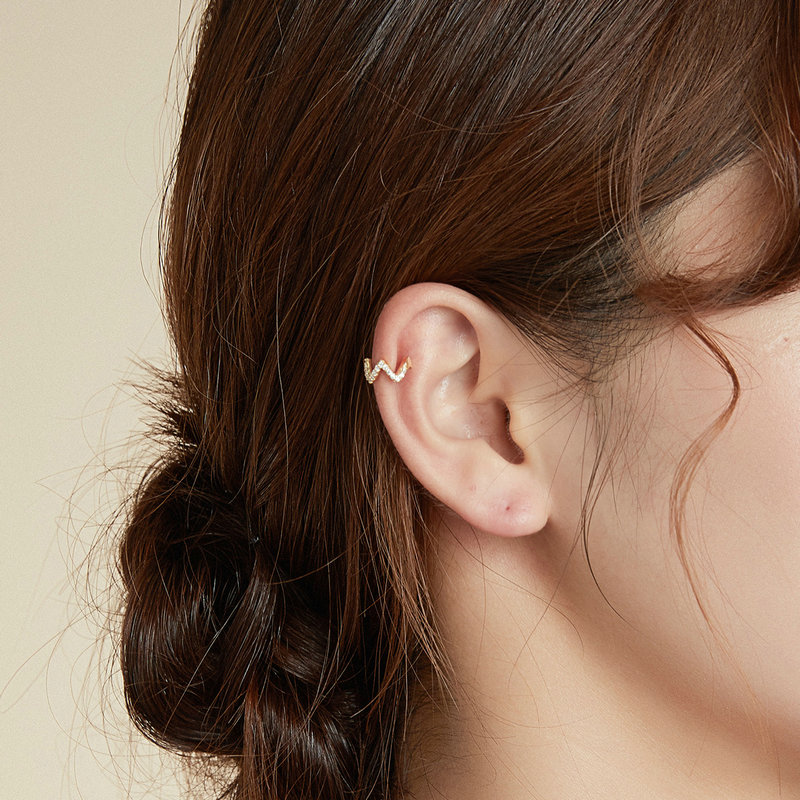 Zlati uhani Uhani z manšeto Cirkoni Srebro 925 Celoten opis