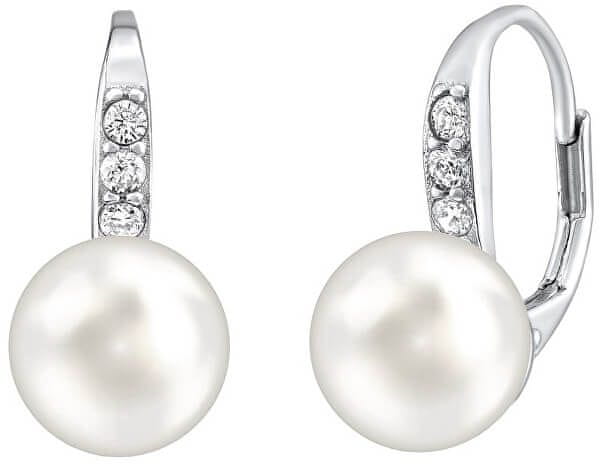 Silvego Nežni srebrni uhani s pravim belim biserom in Swarovski LPSER0639