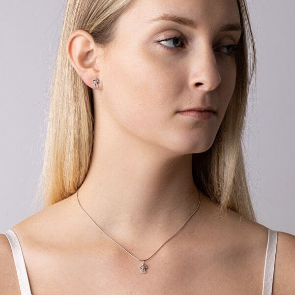 Srebrn obesek s prozornimi cirkoni Andělíček MW2233P. Celoten opis