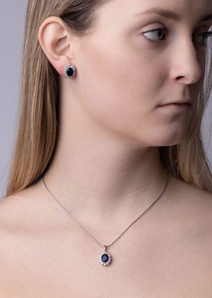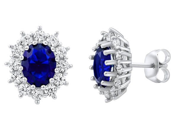 Silvego Srebrni uhani s sintetičnim modrim safirjem Kate JJJ985EB
