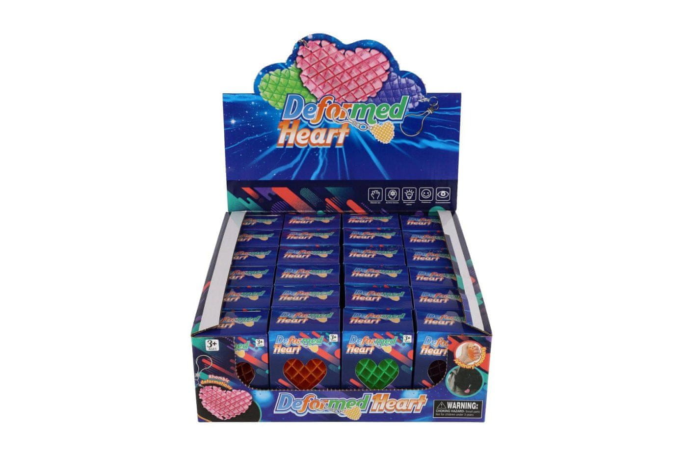 Teddies Obesek fidget oblika srca spreminja antistresno plastiko 6cm 4 barve v škatli 6x6,5cm