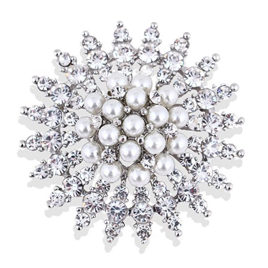 Bleščeča broška s kristali in umetnimi biseri, srebrna. Celoten opis