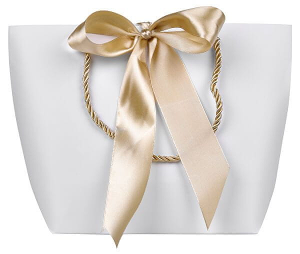Darilna vrečka z zlatim trakom. Celoten opis