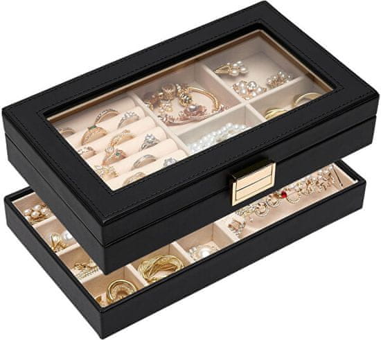 • vključuje 2 predala, ki ju lahko zložite enega na drugega, da ustvarite dizajn škatle za nakit, ali pa ju posamično shranite v predale kot organizatorje,