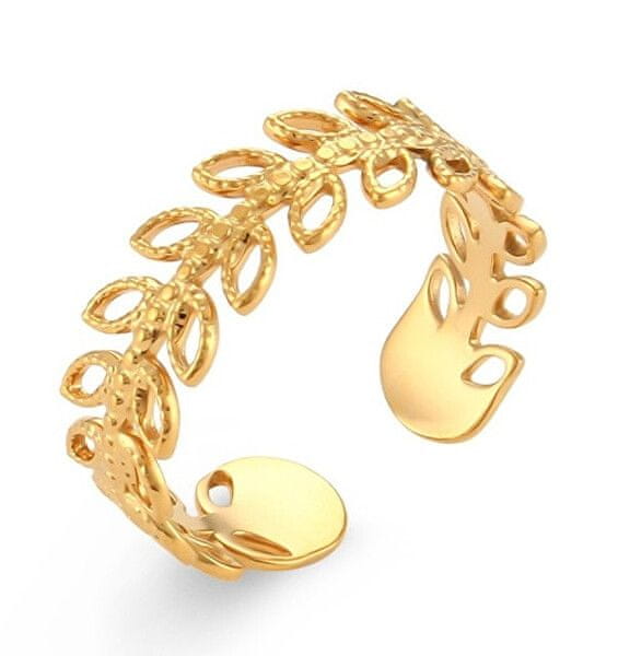 Nežen odprt prstan iz pozlačenega jekla. Celoten opis