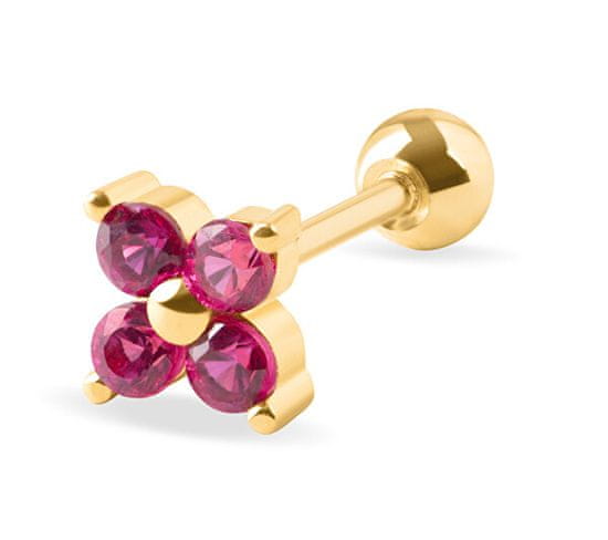 Nežen pozlačen piercing uhan s kristali fuksije. Celoten opis