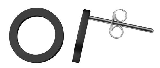 Preprosti črni uhani z jeklenimi obročki. Celoten opis