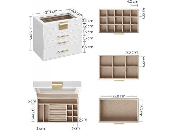 • dimenzije škatle za nakit : 25,1 × 21,5 × 15,3 cm,