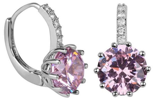 Troli Svetleči uhani z roza kristalom