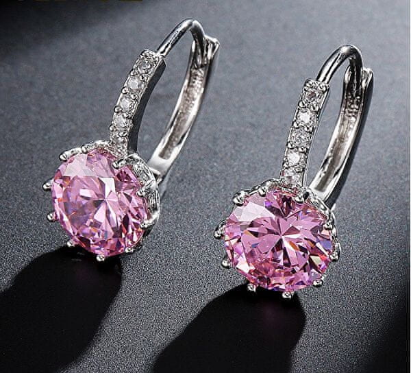 Svetleči uhani z roza kristalom. Celoten opis
