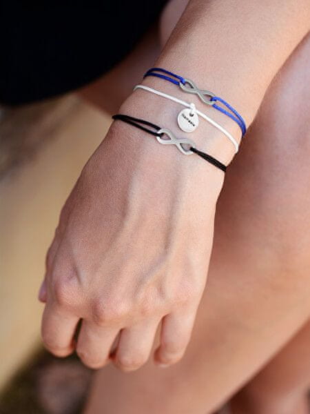 Zapestnica iz črne vrvice z jeklenim simbolom neskončnosti. Celoten opis