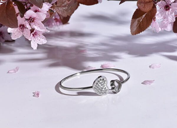 Zapestnica iz masivnega jekla s srčki jeklena / prozorna. Celoten opis
