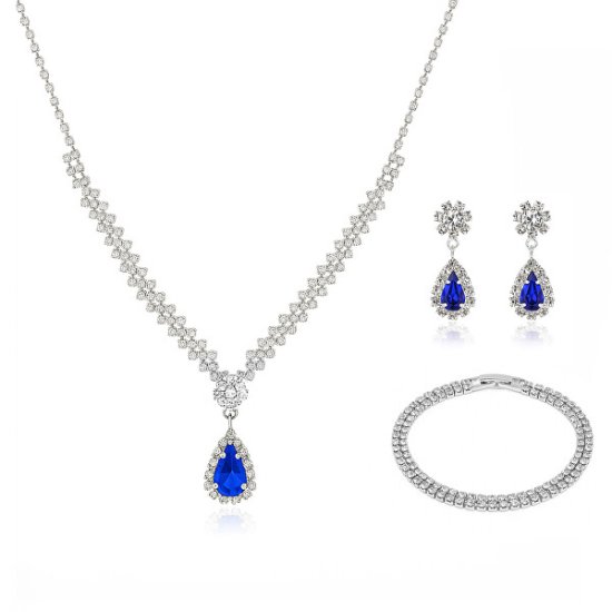 Ženski komplet nakita z modrimi cirkoni Drop (ogrlica, zapestnica, uhani). Celoten opis