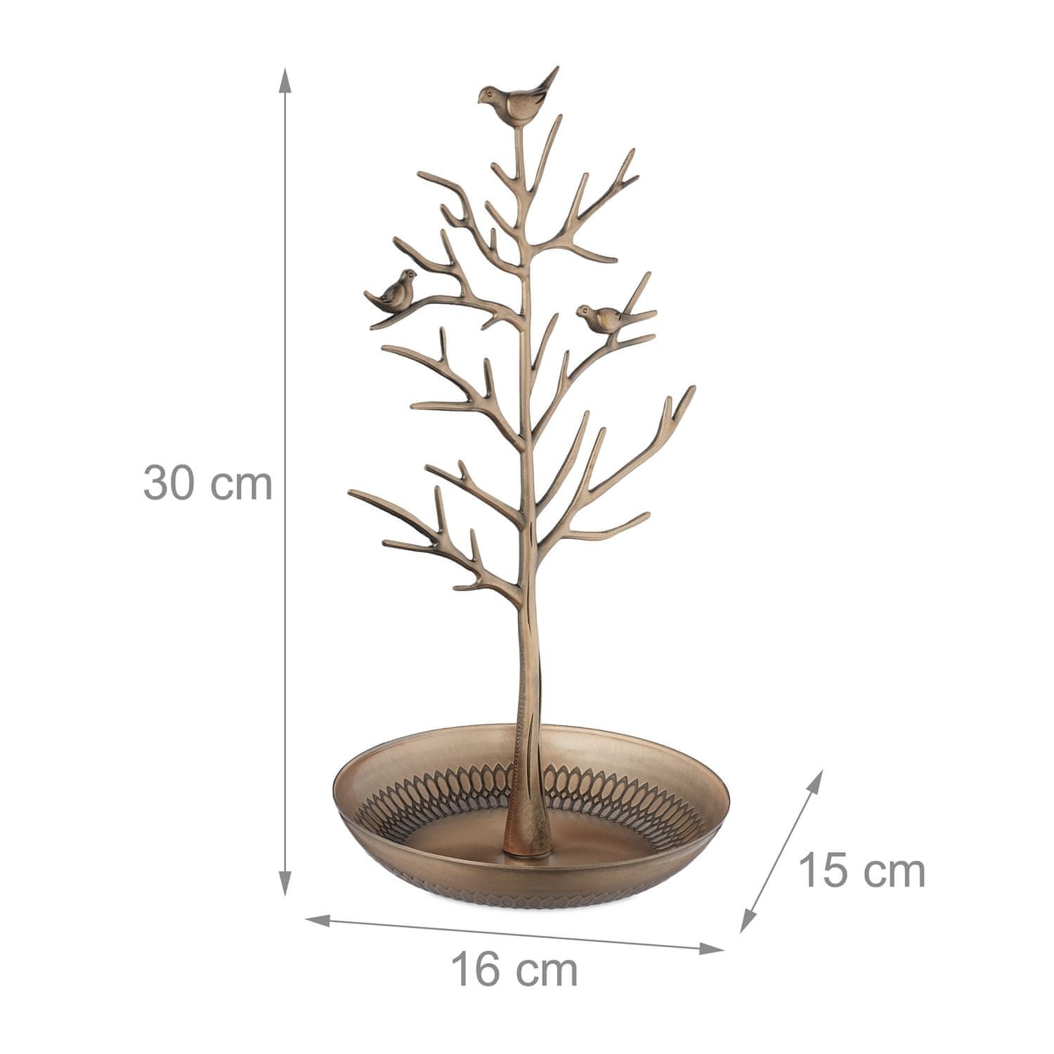 Elegantno drevo za nakit ponuja elegantno rešitev za organiziranje ogrlic in uhanov, izdelano iz robustne kovine za vzdržljivost. Ta okrasni dodatek polepša vsako kopalnico ali spalnico.