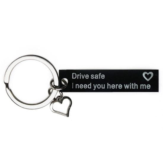 Obesek za ključe s prikupnim napisom je izvirno darilo, s katerim lahko razveselite vsakogar. Obesek z napisom „Drive safe. I need you here with me“ (prevod „Vozi varno. Potrebujem te ob sebi.“)
