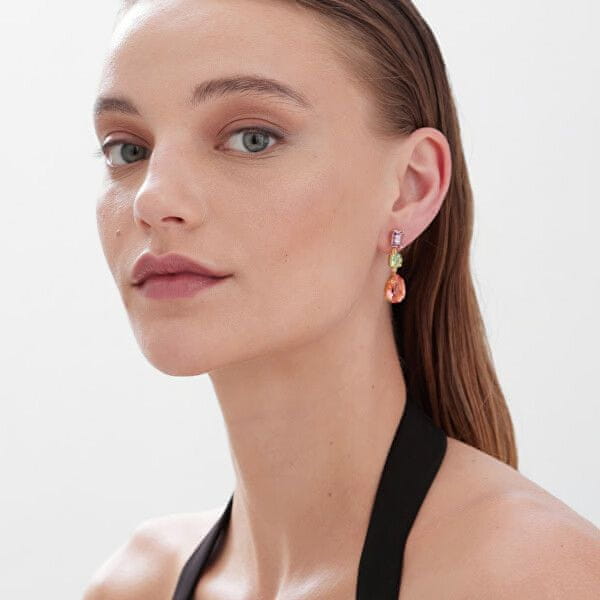 Bay A4892-MDT pozlačeni viseči uhani z barvnimi kristali