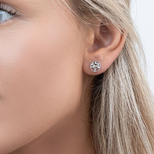 Brezčasni srebrni uhani Drevo življenja s cirkoni AJNS0014
