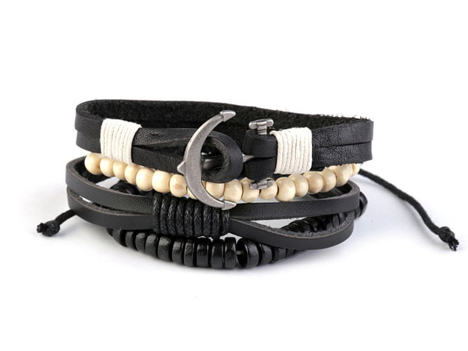Eleganten in nepogrešljiv komplet 4 ujemajočih se zapestnic iz eko usnja in lesenih kroglic v boho slogu. Celoten opis