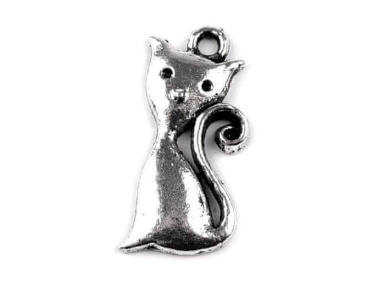 Obesek mačka 12x25 mm - platina s patino (5 kosov)