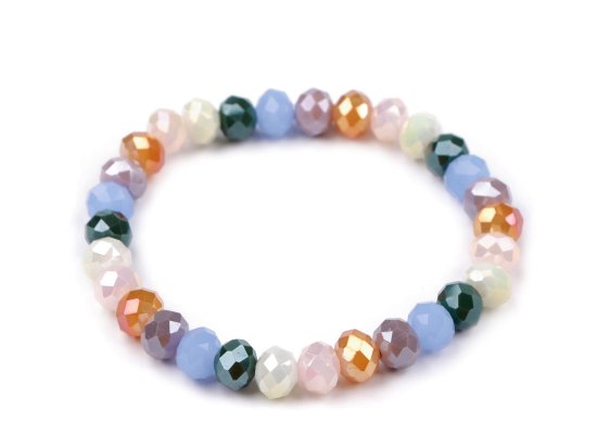 Cenili boste bleščečo zapestnico iz barvnih steklenih kroglic. Natančno brušenje kroglic povzroči impresiven sijaj. Zahvaljujoč elastičnemu traku ima univerzalno velikost in se zlahka natakne na roko. Zapestnica bo okusno okrasila vaše zapestje na družabnih dogodkih, lahko pa jo nosite tudi v službo k bluzi ali obleki. Poskusite kombinirati več kosov in barv skupaj, rezultat bo spektakularen.