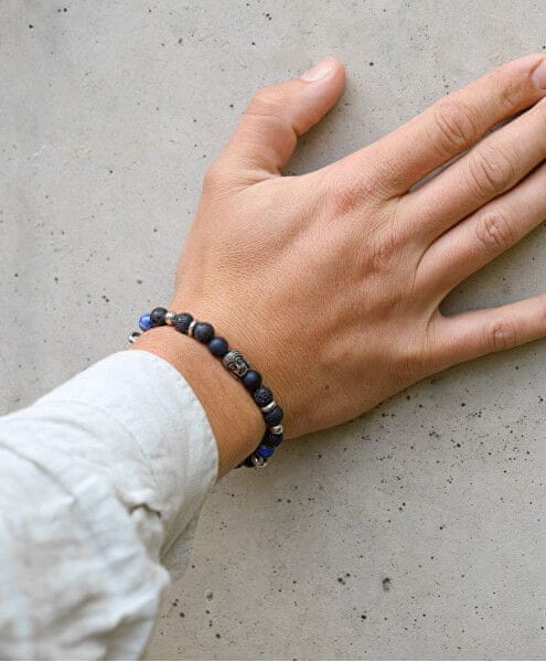 Zapestnica iz lavinega kamna, ahata in lapis lazulija z biseri MINK115/19