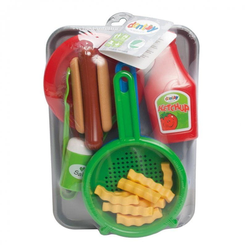 • barvni plastični komplet pripomočkov + hotdog s pladnjem