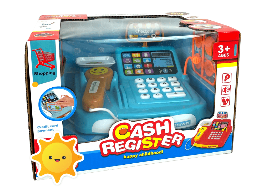Blagajna je izdelana v modri barvi z oranžnimi elementi. Kovanci vam bodo omogočili plačilo živil. Skener ustvarja realističen zvok, ki ga je mogoče slišati pri nakupovanju na trgu.