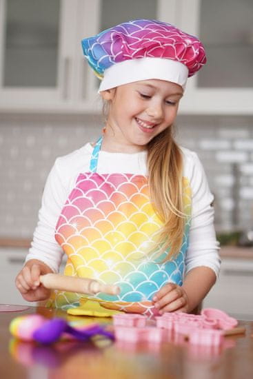 Vsa dodatna oprema je veselo okrašena v mavričnih barvah, da bo peki dodala veliko veselja in barvitosti. Popolno darilo za vse male ljubitelje peke.