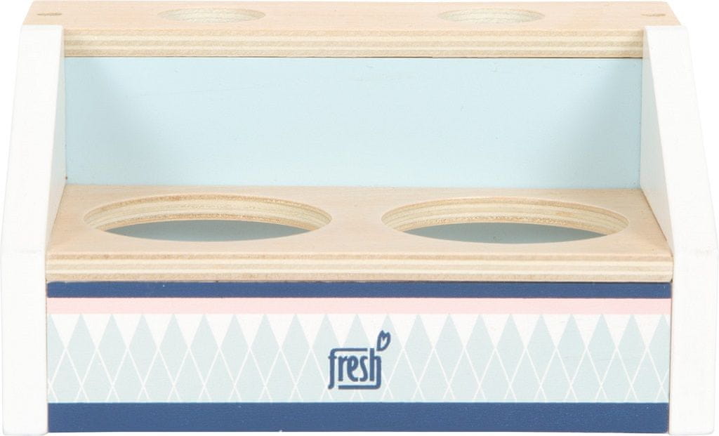 Danes imamo sladoled! Ta vitrina z dvema predelkoma je s svojo minimalistično obliko in naravnim materialom čudovito primerna za majhne kuhinje v vsaki otroški sobi! Vključuje zajemalko, stožce in zlagajoče se kepice za sladoled (te kepice se lahko zaradi magnetov tudi zlagajo). Vrhunec igralnega kompleta je magnetna zajemalka za sladoled – s pritiskom na gumb lahko sladoled postavite na kornet! Glavne značilnosti: barvna shema, nevtralna za oba spolaprimerna dopolnitev LE11815, LE12417 ali LE12232Kopiček, stožci in zlagljive kepice sladoleda imajo magneteigra spodbuja komunikacijske spretnosti in ustvarjalnost