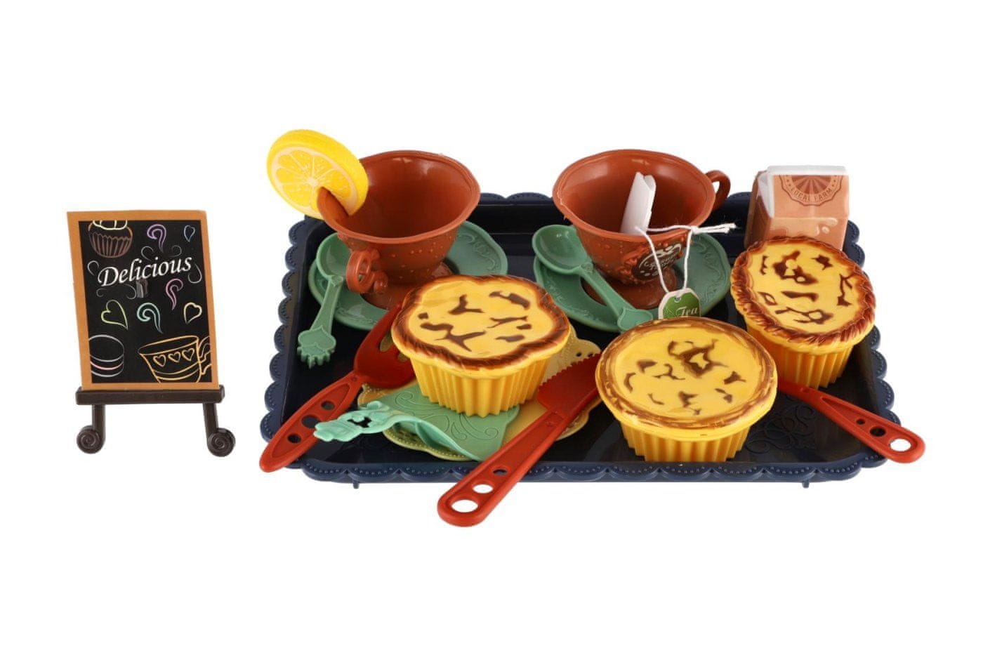 Vsa deklica mora imeti v svoji otroški kuhinji pripomočke, da lahko pripravlja čaj in kavo za svoje prijatelje in plišaste živali. Komplet vključuje vse, kar je potrebno za čajno zabavo z odlično sladico. Dimenzije paketa 22 × 30 × 6 cm. Primerno za otroke, stare 3 leta in več.