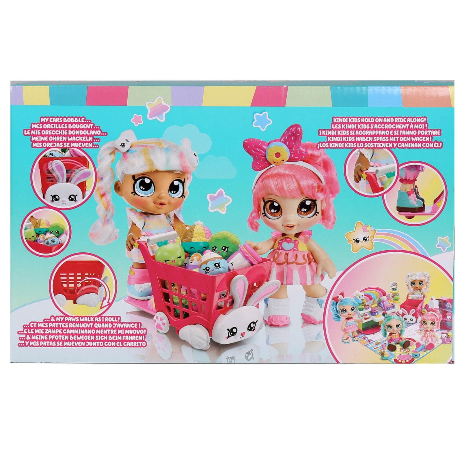 Komplet vključuje funkcionalen nakupovalni voziček, v katerega lahko pospravite figurice in dodatke – in celo namestite lutko Kindi Kids, ki vas bo spremljala na vaši nakupovalni pustolovščini!