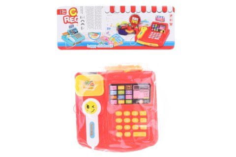 Plastična blagajna z blagom in čitalnikom kartic. Vključen je plastičnidenar.Bralnik oddaja zvoke. Dimenzije blagajne so približno 15 × 13 × 6,5 cm. Napajanje z 2× baterijami AA (niso vključene).Pakirano v vrečki.Starost 3+