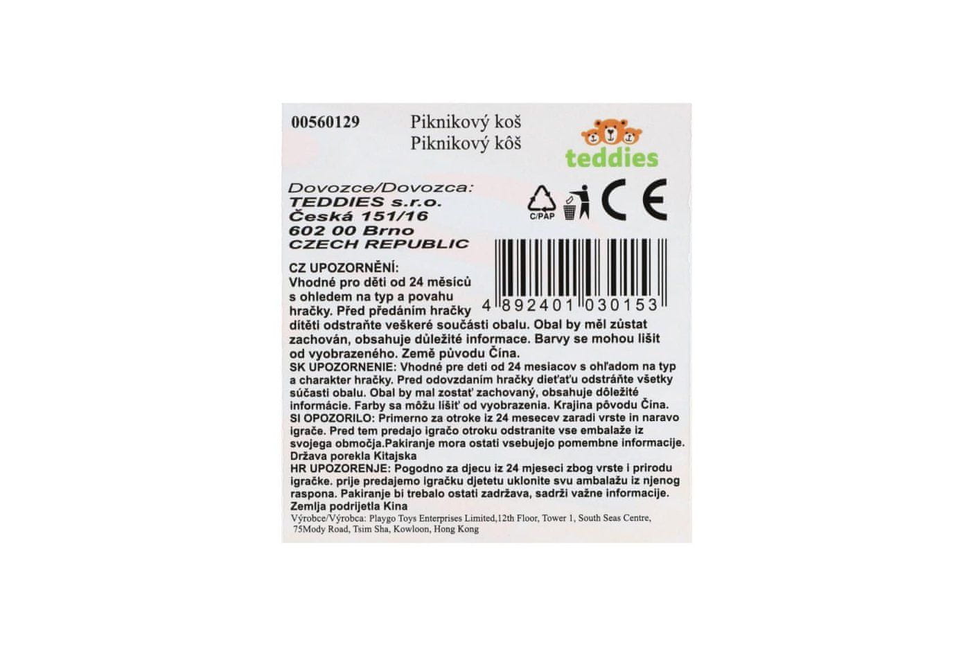 S tem pisanim kompletom posode v priročni plastični košarici si privoščite piknik, poln domišljije. Komplet vsebuje vse, kar potrebujete za piknik za štiri osebe – krožnike, jedilni pribor, skodelice in celo odejo. Lahka in varna zasnova je idealna za otroško igro doma, na vrtu in na prostem. Razvija otroško domišljijo in socialno igro. Dimenzije paketa 24 × 18 × 8 cm Primerno za otroke od 2. leta starosti dalje.