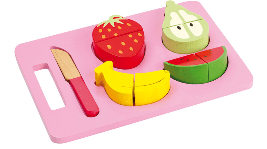 So v vaši kuhinji vse pripravljeno za pripravo zdravega prigrizka? Je sadje oprano? Treba jih je le še narezati. Pripravite desko za rezanje in nož in že ste pripravljeni – banane, jagode, hruške in melone. Paket vsebuje desko za rezanje, lesen nož in 4 sadeže, ki jih lahko otroci razrežejo na pol. Sadje je v celoti pritrjeno z velcro. Primerno za otroke od 3. leta starosti dalje.