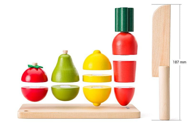 Krajanje na deski za rezanje je igrača, opremljena z Velcro zapirali, ki omogočajo, da „narezana“ živila vedno znova zlagate nase. Idealna igrača za razvijanje motoričnih spretnosti in logičnega razmišljanja