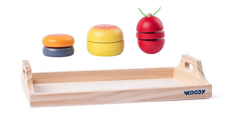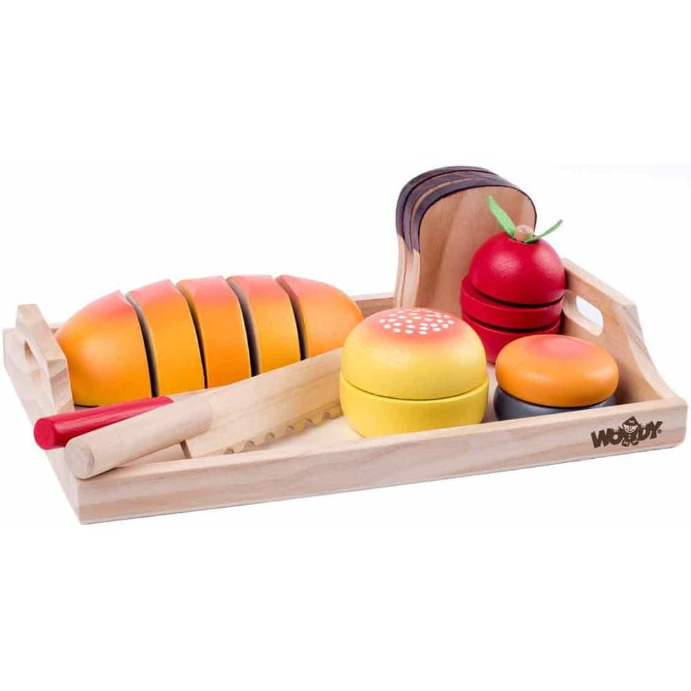 Rezanje hrane DREVENI pladenj za zajtrk – rezanje Vsa živila na lesenem pladnju so sestavljena iz delov, ki so povezani z Velcro zaponkami Hrano je mogoče večkrat narezati in ponovno sestaviti na ta način Idealna igrača za … Celoten opis