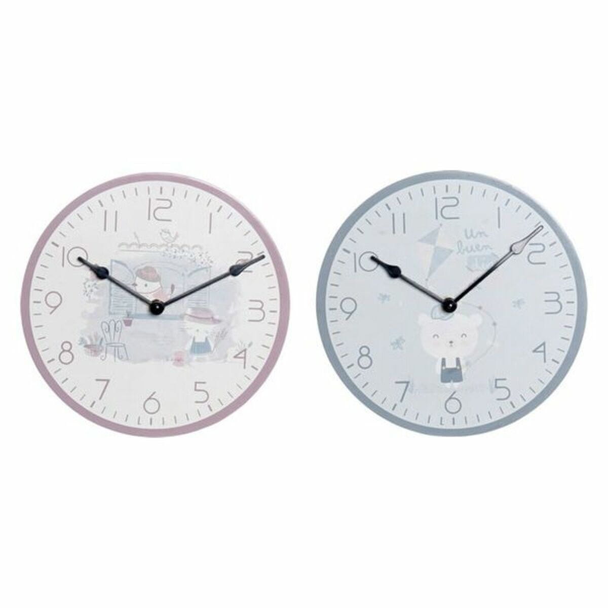 DKD Home Decor Stenska ura DKD Home Decor Modra Roza Les Kovina Plastika MDF Les Otroška Ptica 24 x 3 x 24 cm (2 enoti)